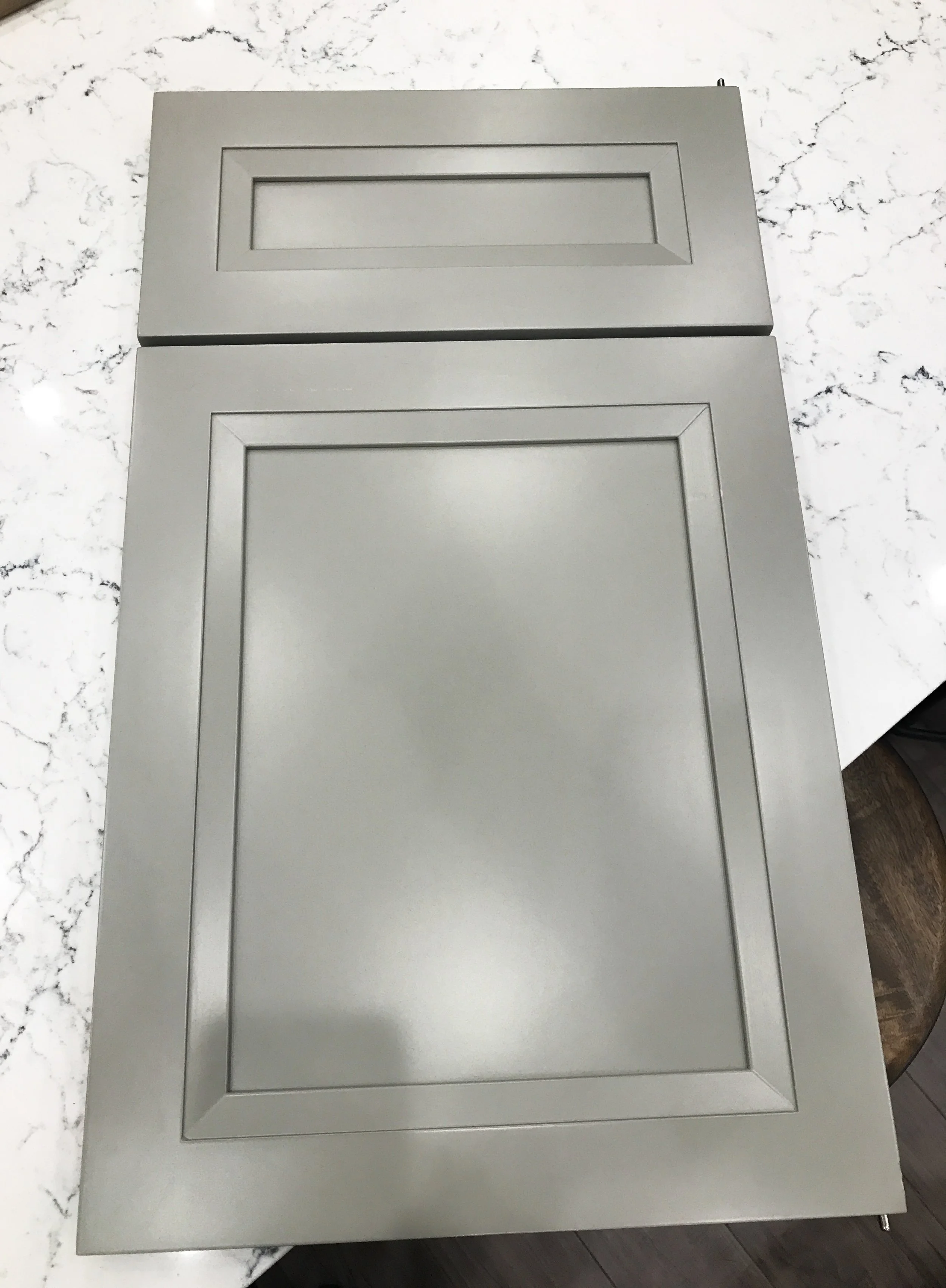 Let's start with door design. For the kitchen, I went with the below cabinet front. I also LOVED this color but quickly learned that this was a top-dollar color. When it comes to the colors and stains available, you CAN get anything you'd like. You just need to ask yourself how much you are willing to pay. The below door is shown in a custom paint color that falls into their highest pricing tier. Custom paint will add thousands to your end cost. With cabinets, you are able to choose from several stock stains that are included in the pricing. From there, you can choose to put a glaze over the stain. Glazes are gorgeous, but they will often boost you up to the highest price tier, much like custom paint colors would.