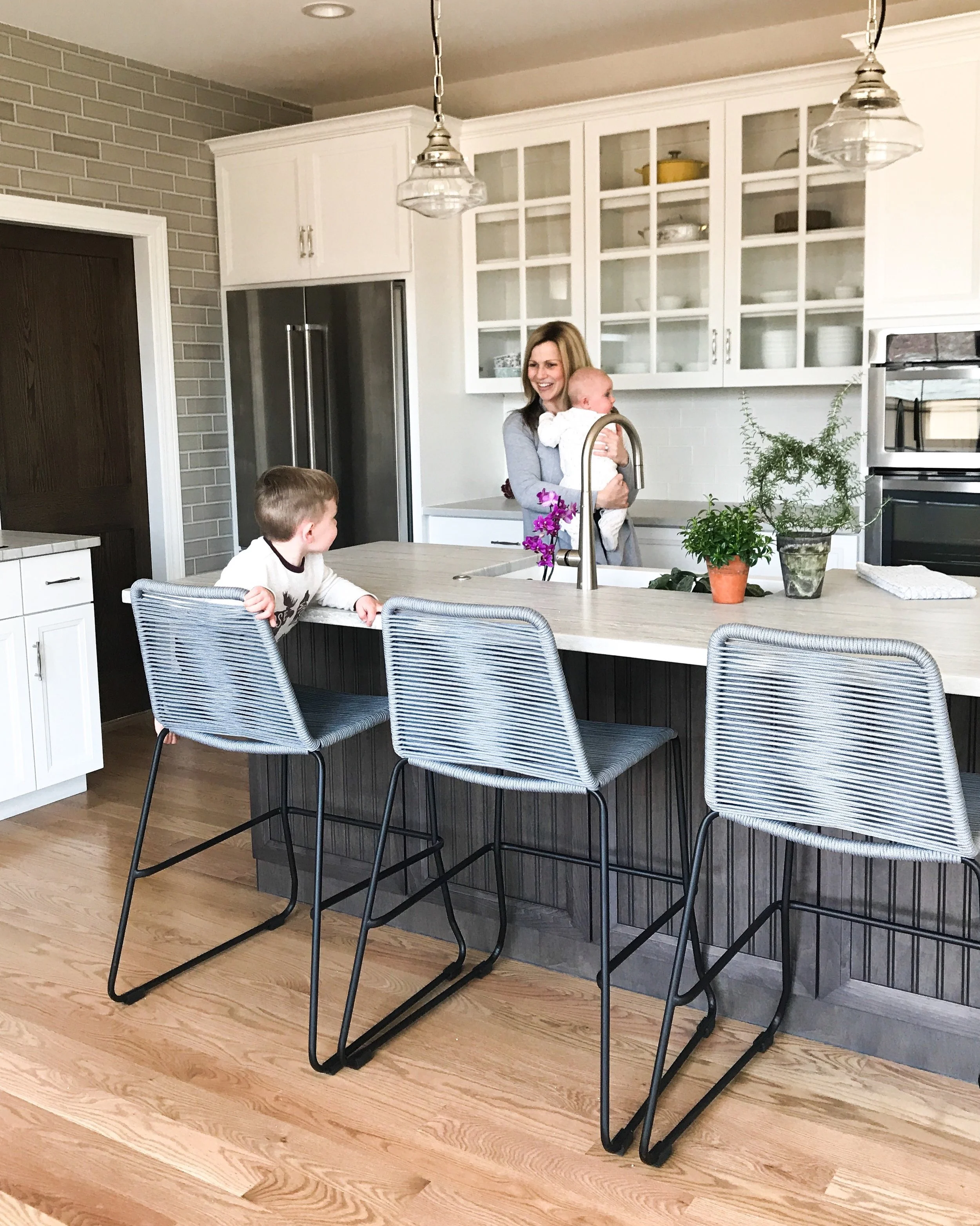 I loved that the Barclay Counter Stools from Modloft came in nine different colors. I was absolutely torn between Blue Cord, Light Gray Cord, and Dark Gray Cord. In the end, I know that any of those colors would have gone perfectly with our new home decor, but I am so glad we selected the Light Gray Cord. I feel that they complement the colors of our kitchen perfectly.